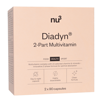 Les gélules multivitaminées Diadyn® de nu3 sont parfaitement adaptées pour compléter vos besoins nutritionnels au quotidien.